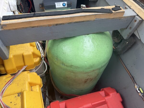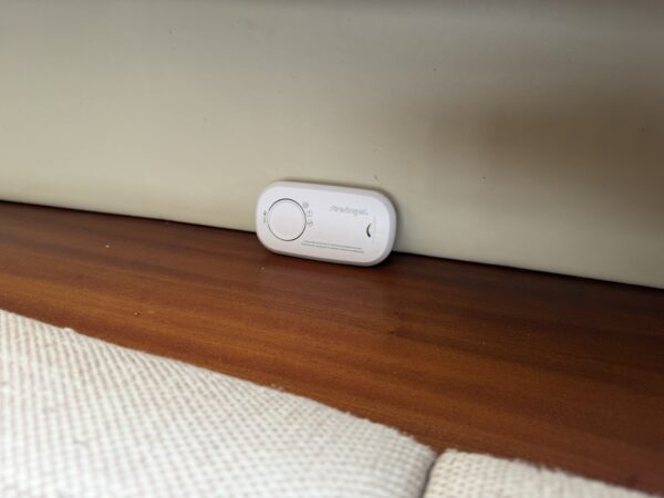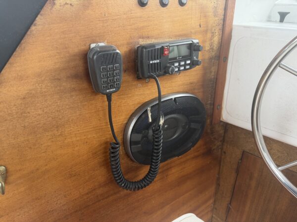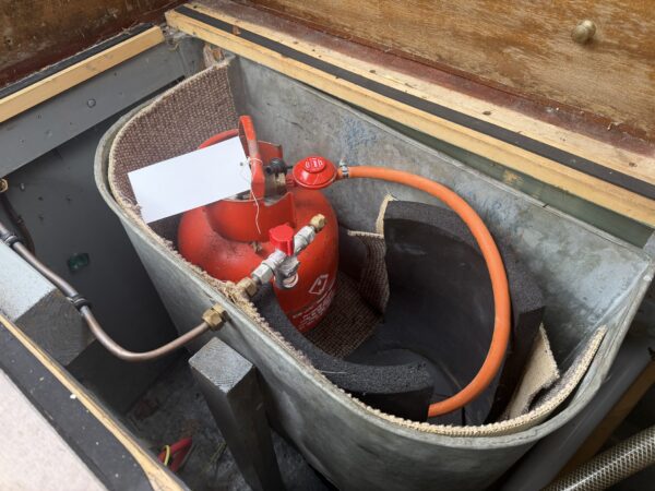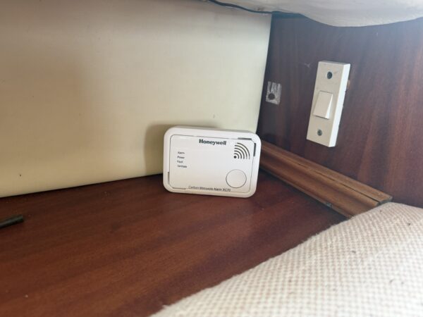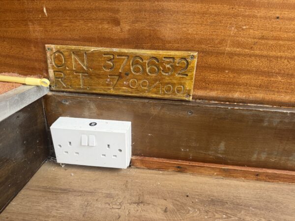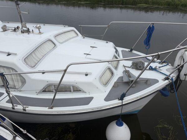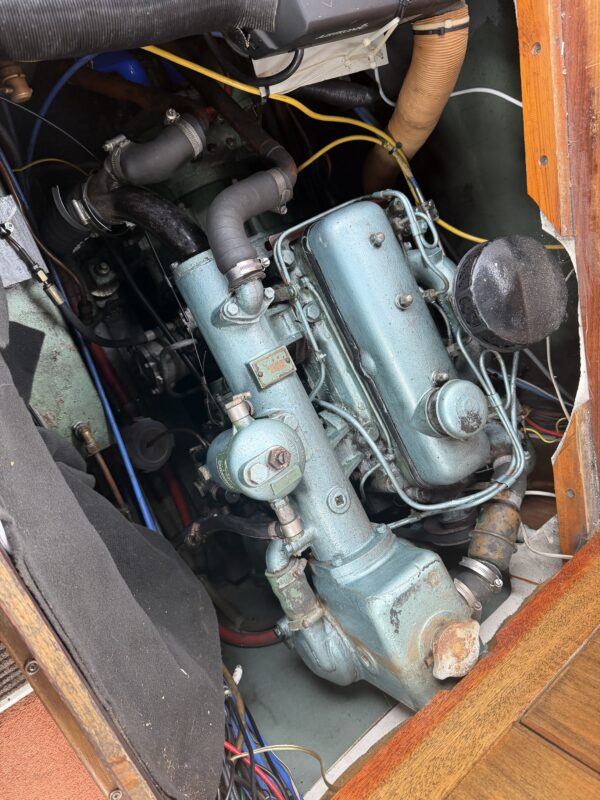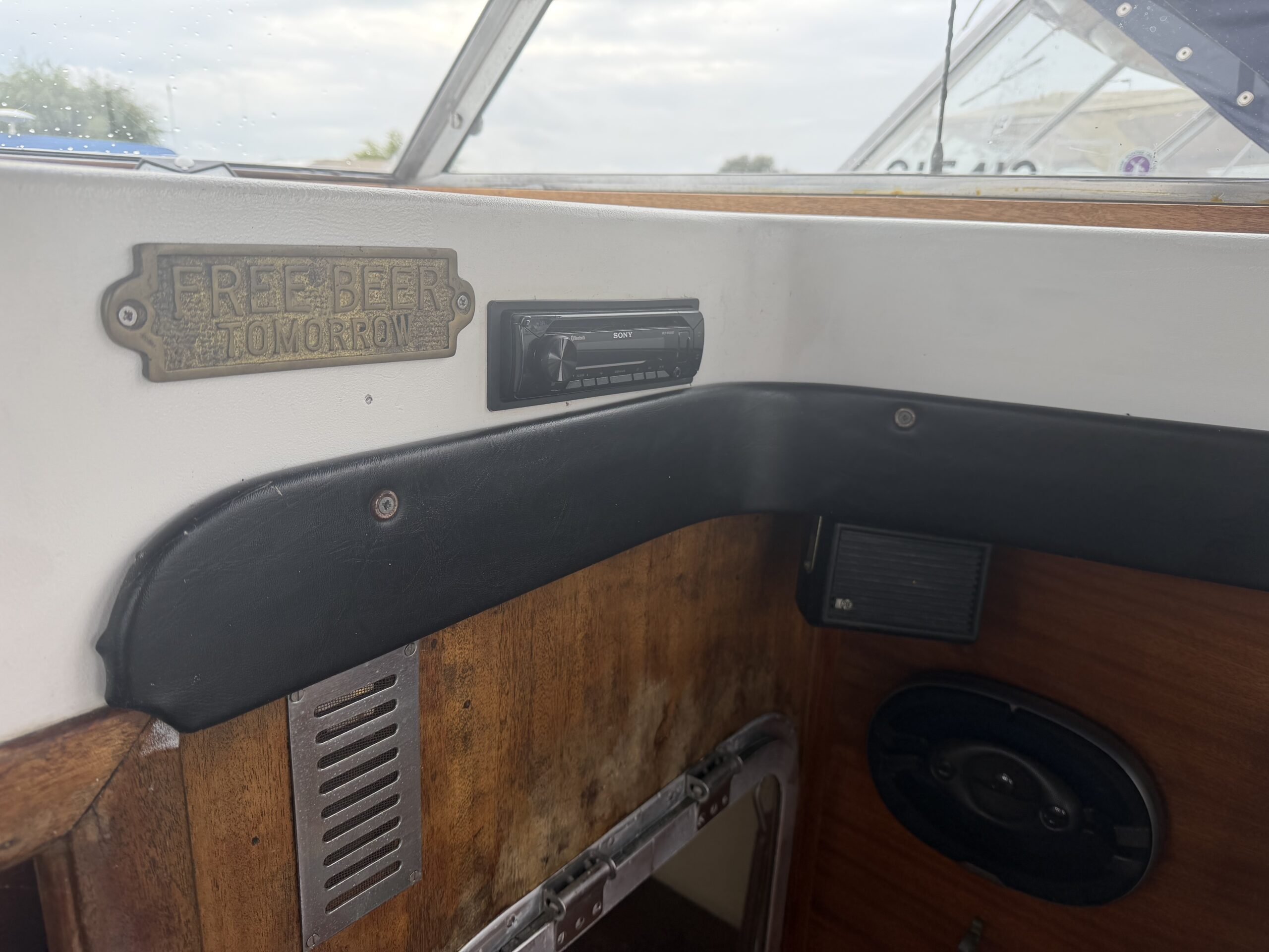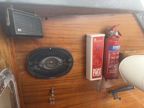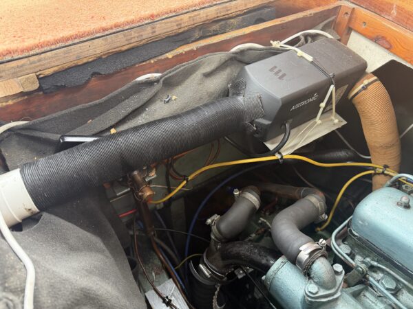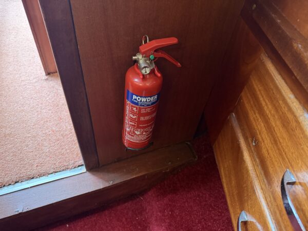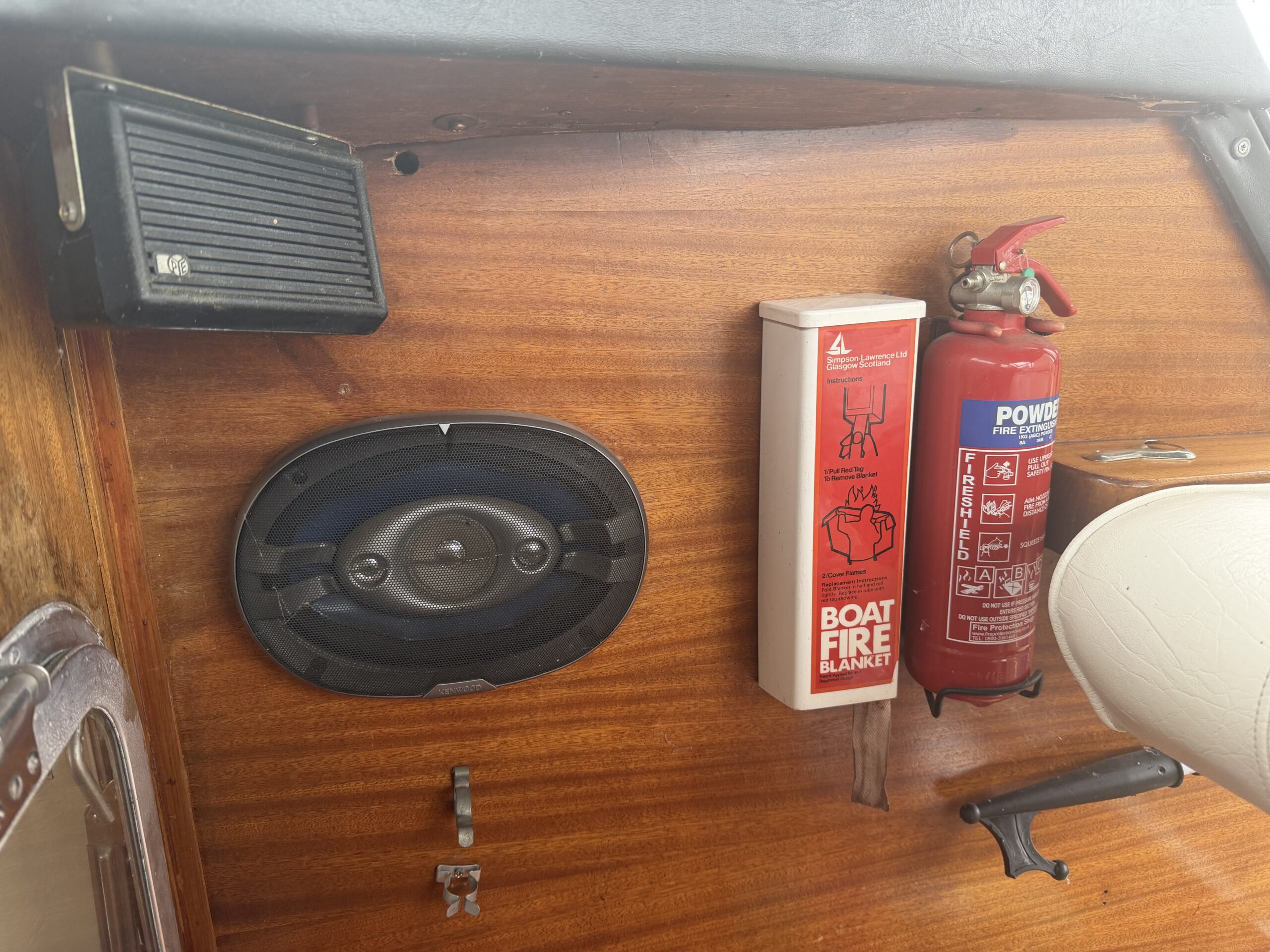 Jabsco sea toilet, Voyager 4500 LPG cooker, 1 x 3.9kg LPG bottles (Gas system requires attention before use), Eberspacher warm air cabin heater, 55L calorifier tank, compass, depth sounder, VHF radio, brass clock and barometer, fire blanket and extinguishers, CO alarm, mooring ropes, life ring, fenders, boat hook, anchor and windlass.