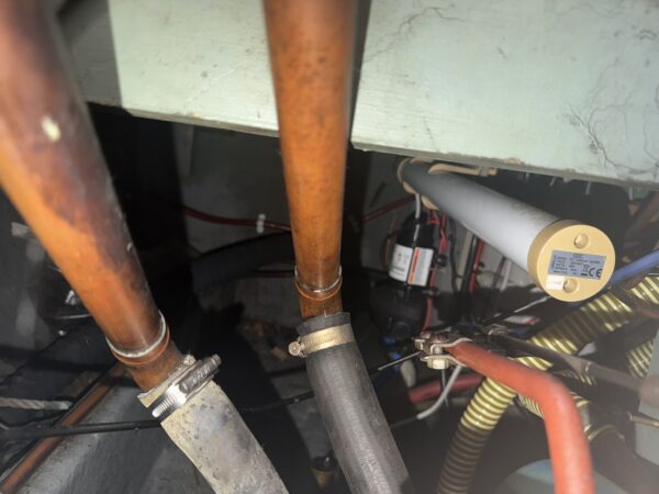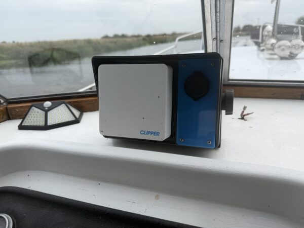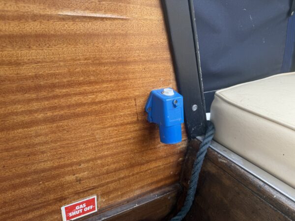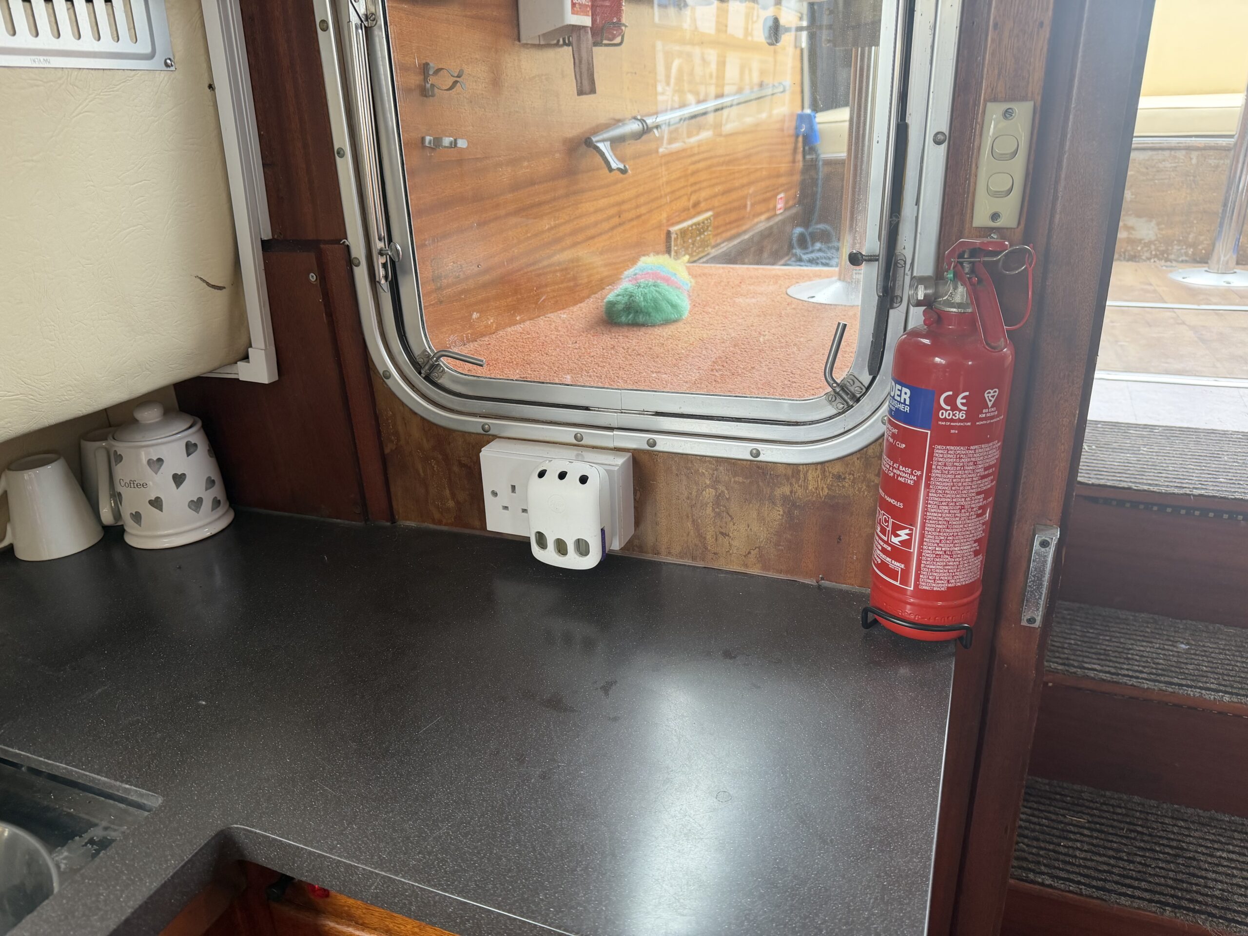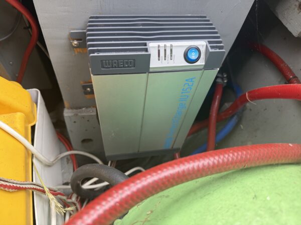 240v shore power connection, consumer unit, battery charger, double plug sockets, Waeco battery charger.