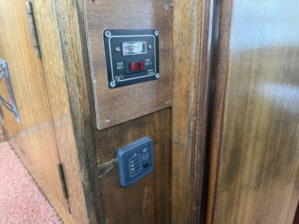 3 x 12v batteries, battery level indicator, water tank gauge, cockpit and cabin lighting, navigation lights, anchor light, spot light, horn, bilge pump, domestic water pump, shower drain pump, CD/radio player, .