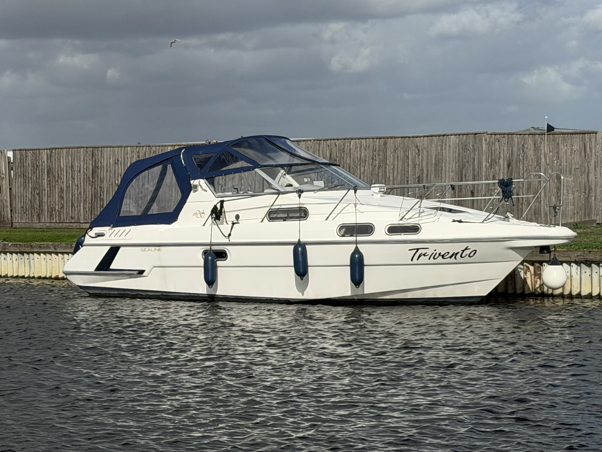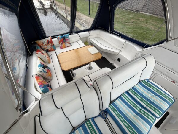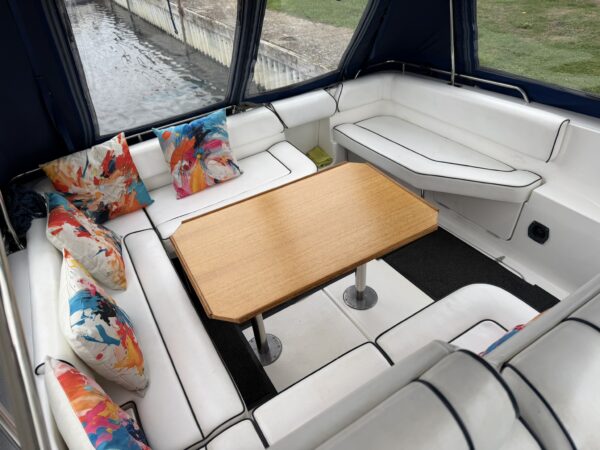‘Trivento’ (Formerly Santa Zita) is a British built sports cruiser with spacious accommodation and a large, sociable cockpit. Powered by twin diesel engine, this versatile vessel allows for comfortable cruising on both the inland waterways and coastal trips. We are open for viewings 7 days a week by prior appointment please.