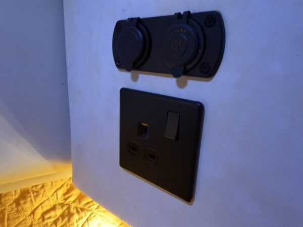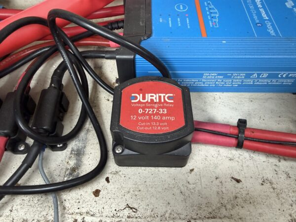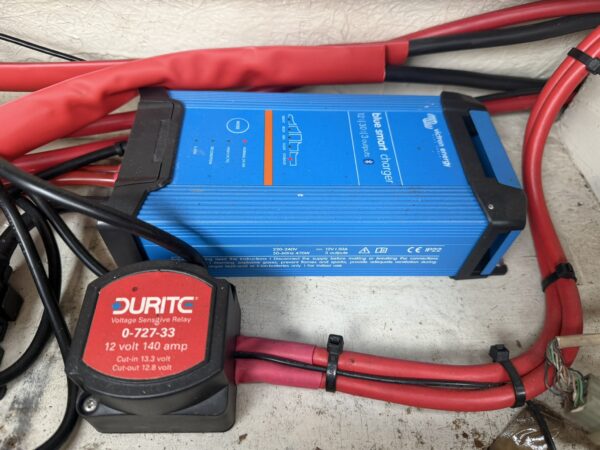 12v- Victron Blue Smart battery charger, Split charge relay, Victron Argofet battery isolator, 12v control panel, 3kw inverter, navigation lights, remote electric spotlight.